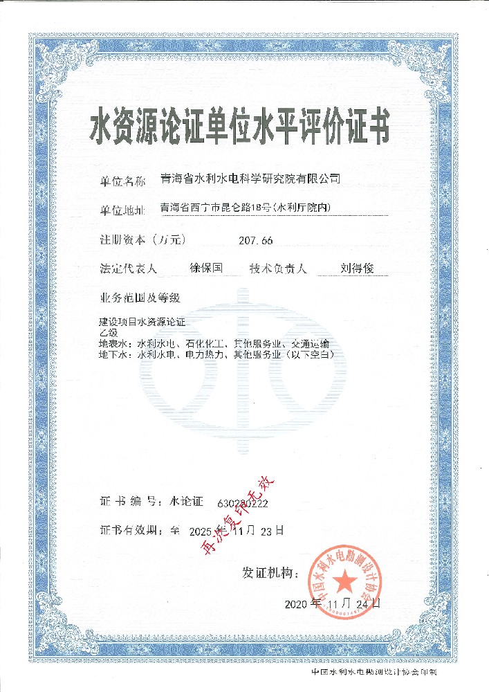 工程設(shè)計資質(zhì)證書(水利行業(yè)) -