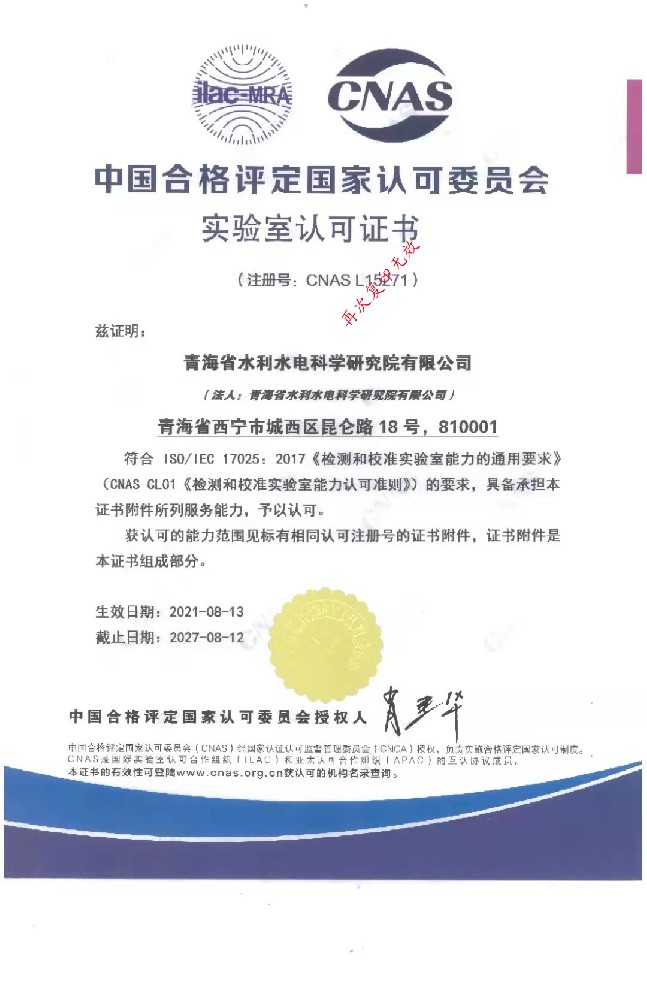 水利工程質(zhì)量檢測單位資質(zhì)等級證書(金屬結(jié)構(gòu)類) -